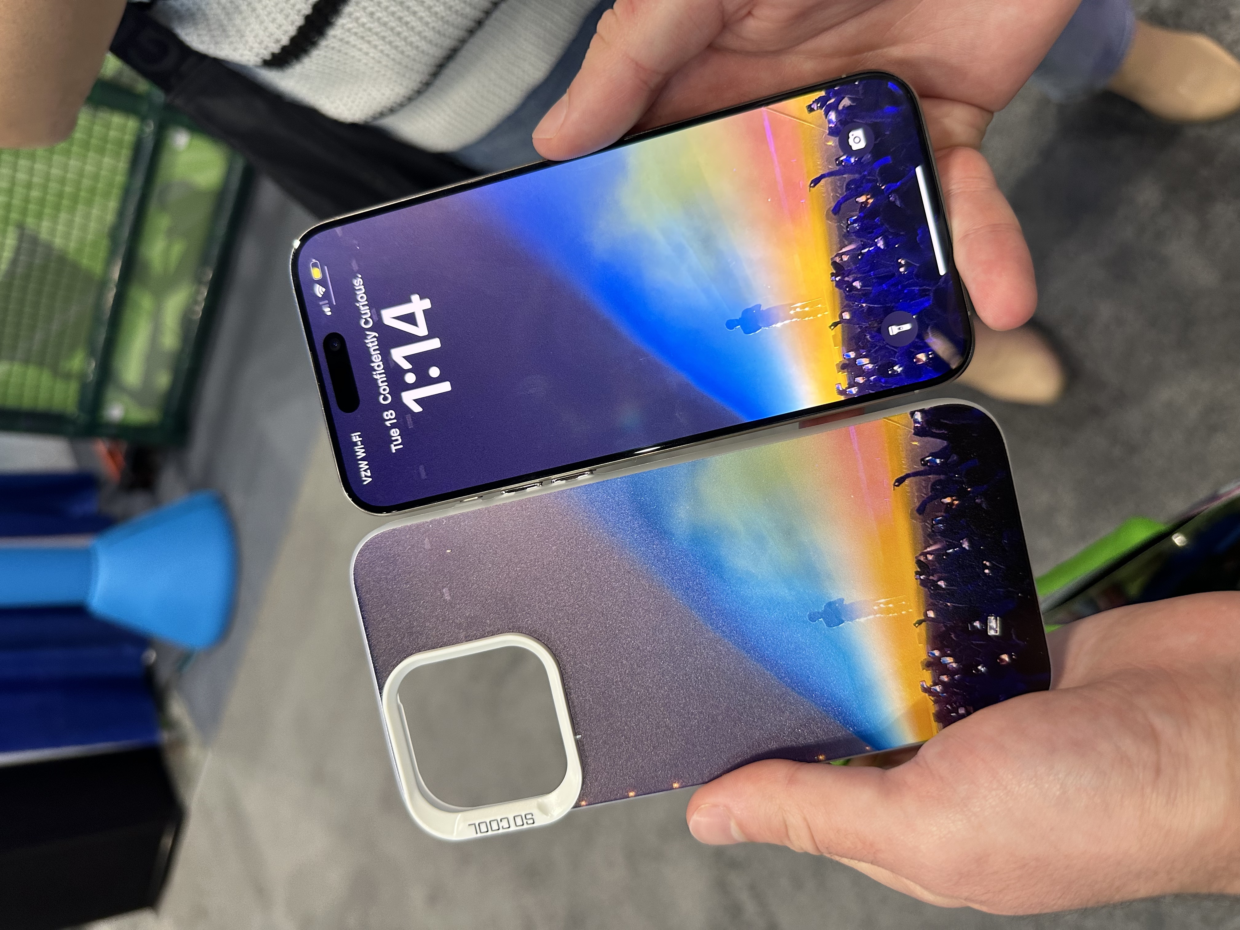 Bezoekers nemen een hoesje mee als aandenken aan hun dag. Met foto van de achtbaan, mascotte of groepsfoto — leuker dan een sleutelhanger.